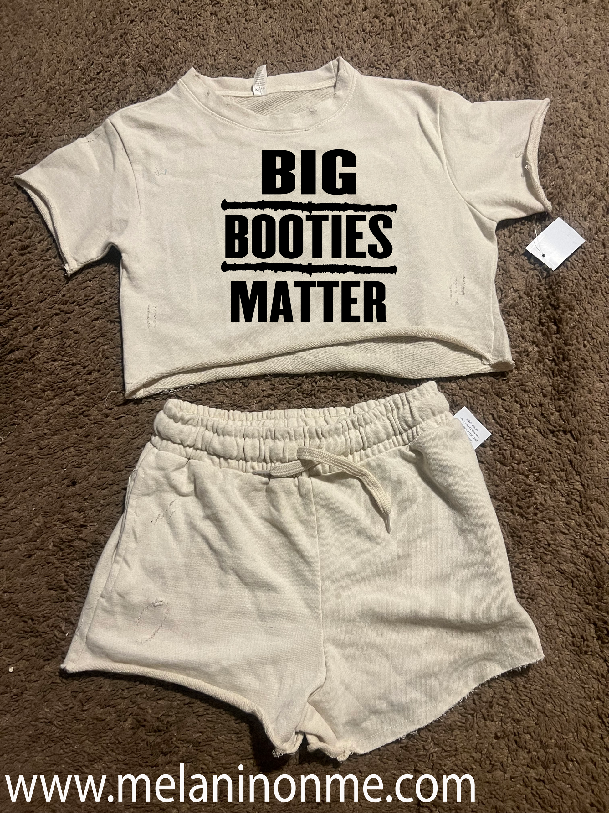 Design Section: Featuring the iconic "Big Booties Matter" slogan, our crop top sets make a bold statement wherever you go. With attention to detail and vibrant colors, each design captures the essence of confidence and celebration. From eye-catching prints to sleek silhouettes, our collection offers something for every fashion-forward melanin goddess.