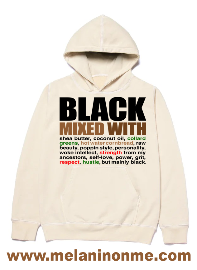 Empowerment Statement: At Melanin On Me, we believe in celebrating the diversity and resilience within the melanin community. Our "Black Mixed With Melanin Hoodie" is more than just clothing – it's a symbol of unity, pride, and strength. By wearing this hoodie, you're not only expressing your identity but also empowering others to embrace their uniqueness and celebrate their heritage.