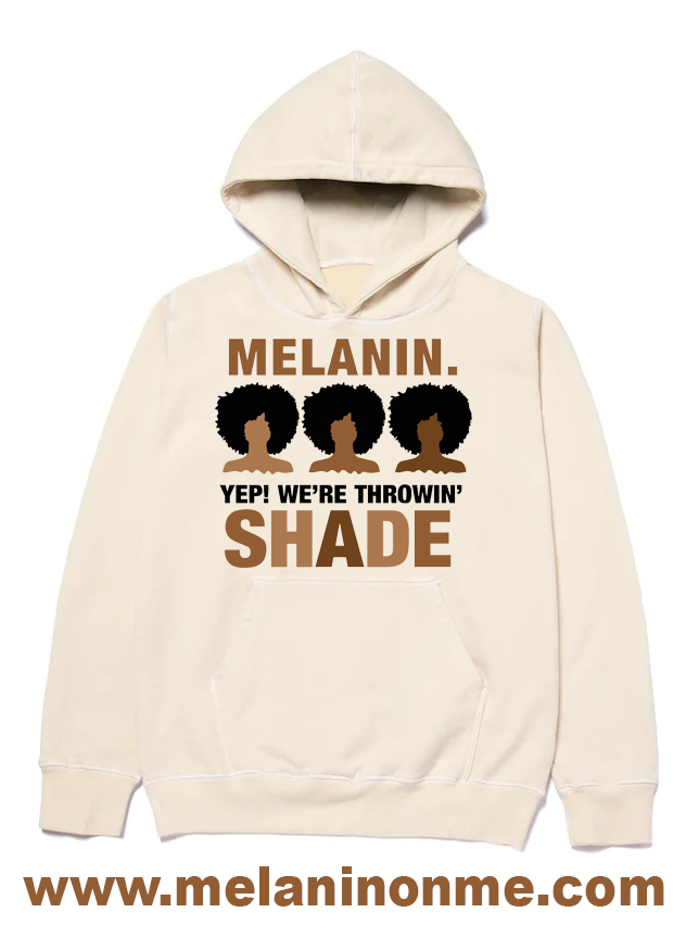 Design: Featuring a bold and sassy design, our hoodie proudly displays the phrase "Melanin Yep We're Throwin Shade" in eye-catching typography, symbolizing confidence and empowerment. The design is both playful and empowering, making a statement about embracing melanin excellence and owning your space. With its unique design, it's sure to turn heads and spark conversations about self-love and confidence.