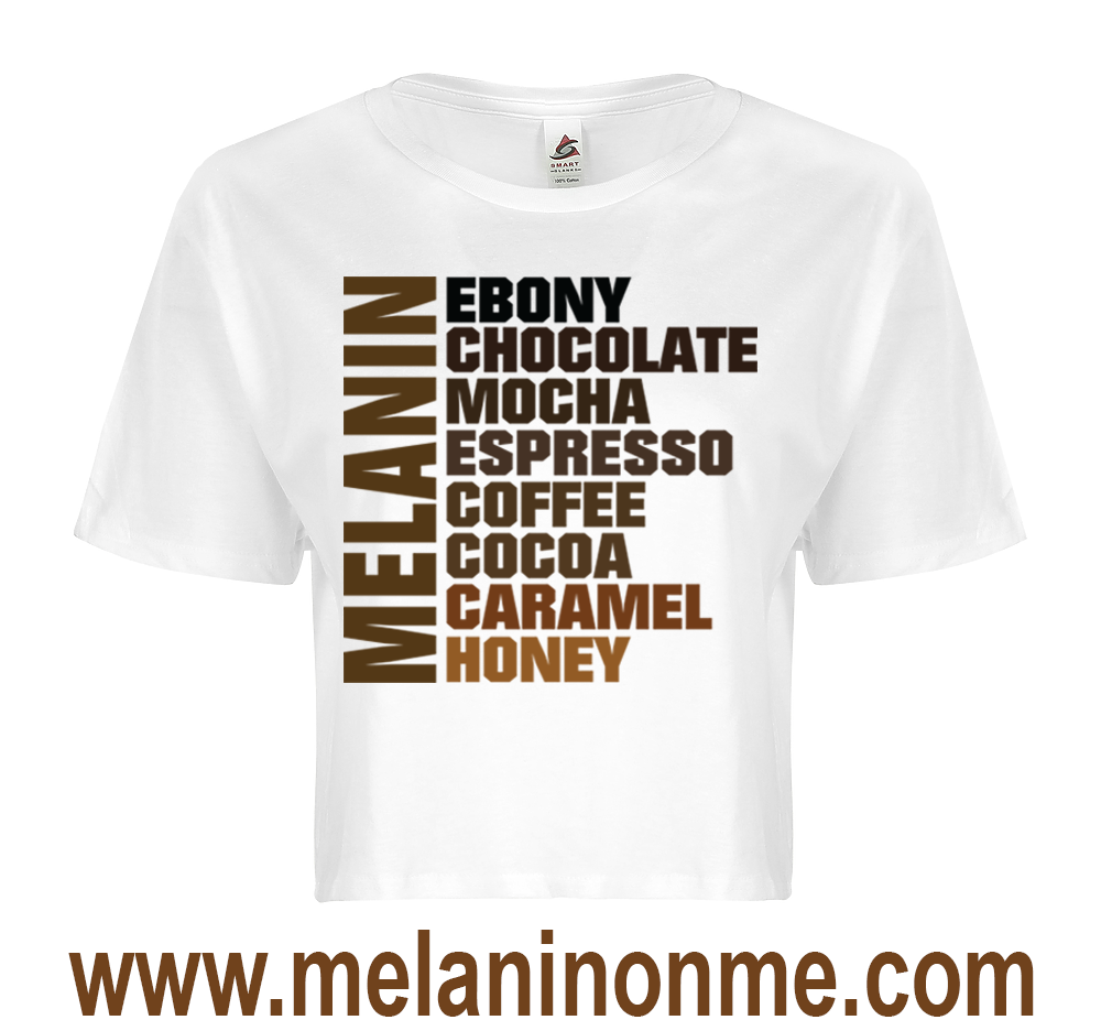 Make a bold statement while staying comfortable – order your White Crop Top Melanin T-Shirt today and wear your pride with style.